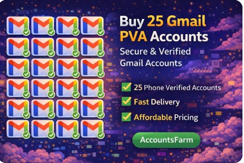 Looking to buy 25 Gmail PVA accounts? At AccountsFarm, we offer a bulk package of 25 secure, phone-verified (PVA) Gmail accounts that are ready for immediate use. Whether you need them for personal, business, or marketing purposes. These accounts are perfect for anyone looking to maintain a high-quality, verified Gmail account setup.